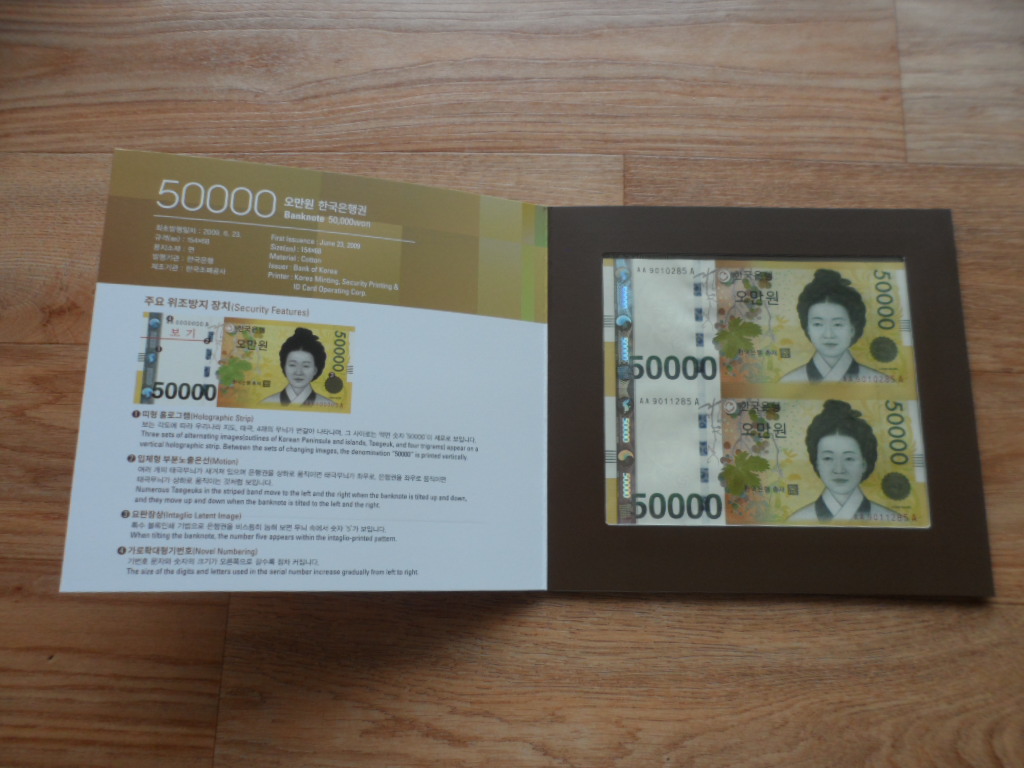 > 전체카테고리 > 우리나라 지폐 > 연결은행권 연결은행권 오만원권 2면부 연결권첩으로 상태 아주 좋습니다(퍼펙트함).
