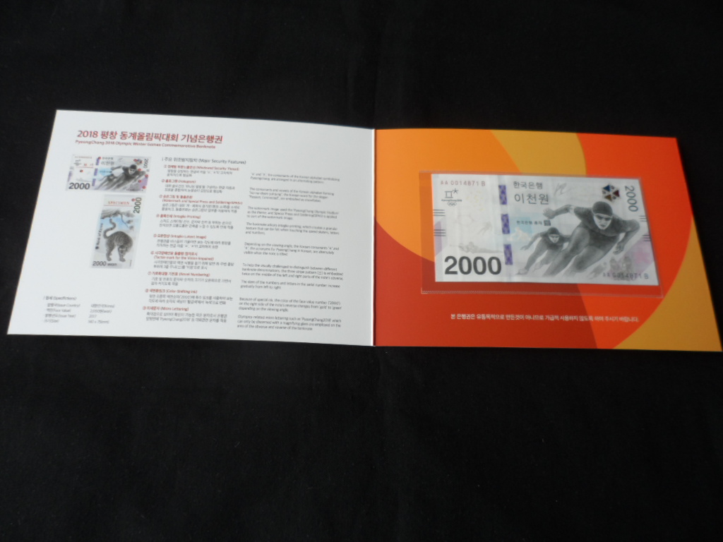 "2018 평창 동계올림픽대회 기념지폐은행권"으로 낱장형 지폐와