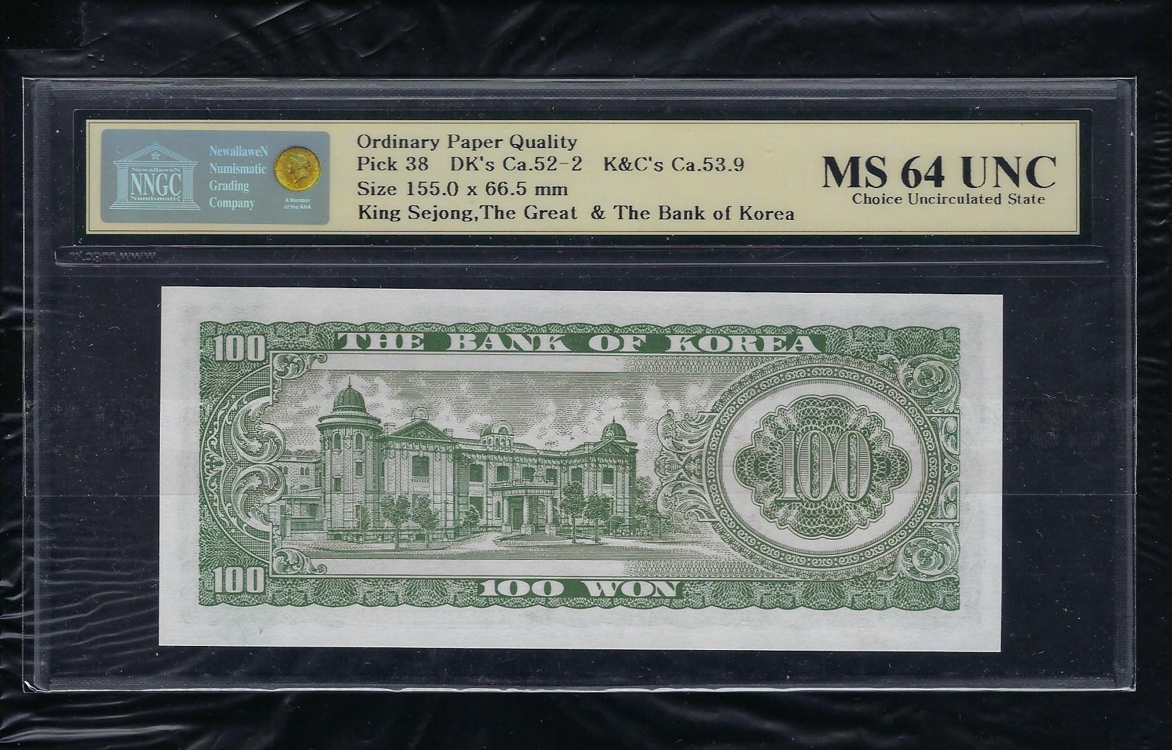 한국은행 다 100 원권 세종대왕 밤색중기인쇄 10포인트 NNGC MS 64 UNC