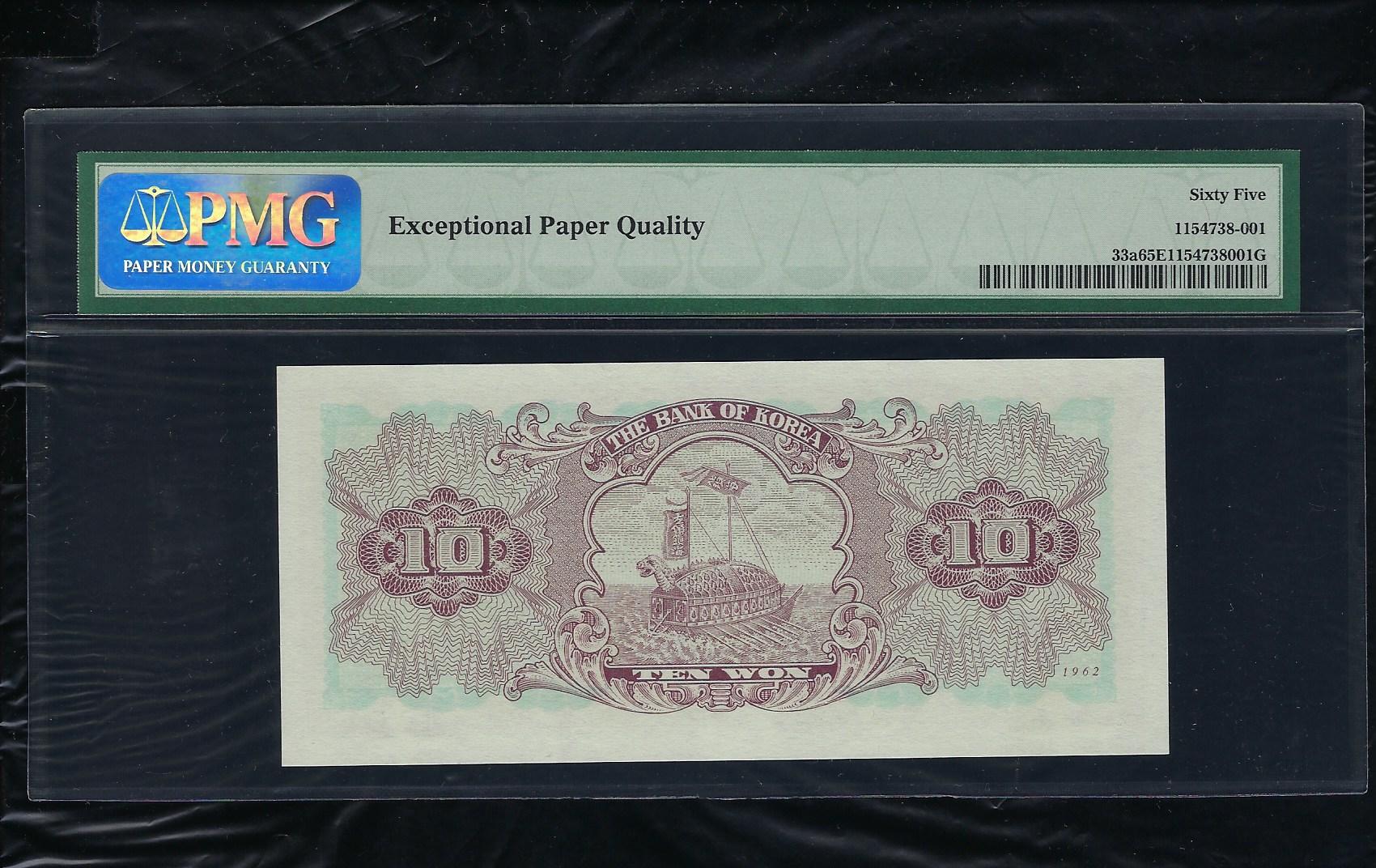 한국은행 나 10 원권1962년 제16판 PMG 65 EPQ