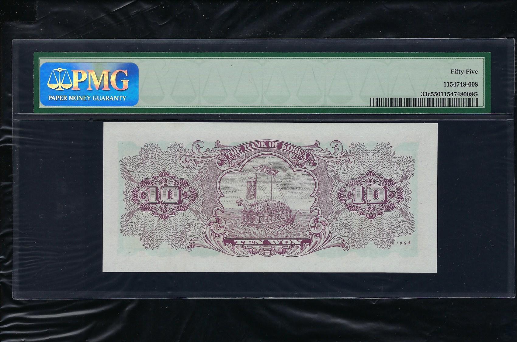 한국은행 나 10 원권 1964년 제 55 판 PMG 55