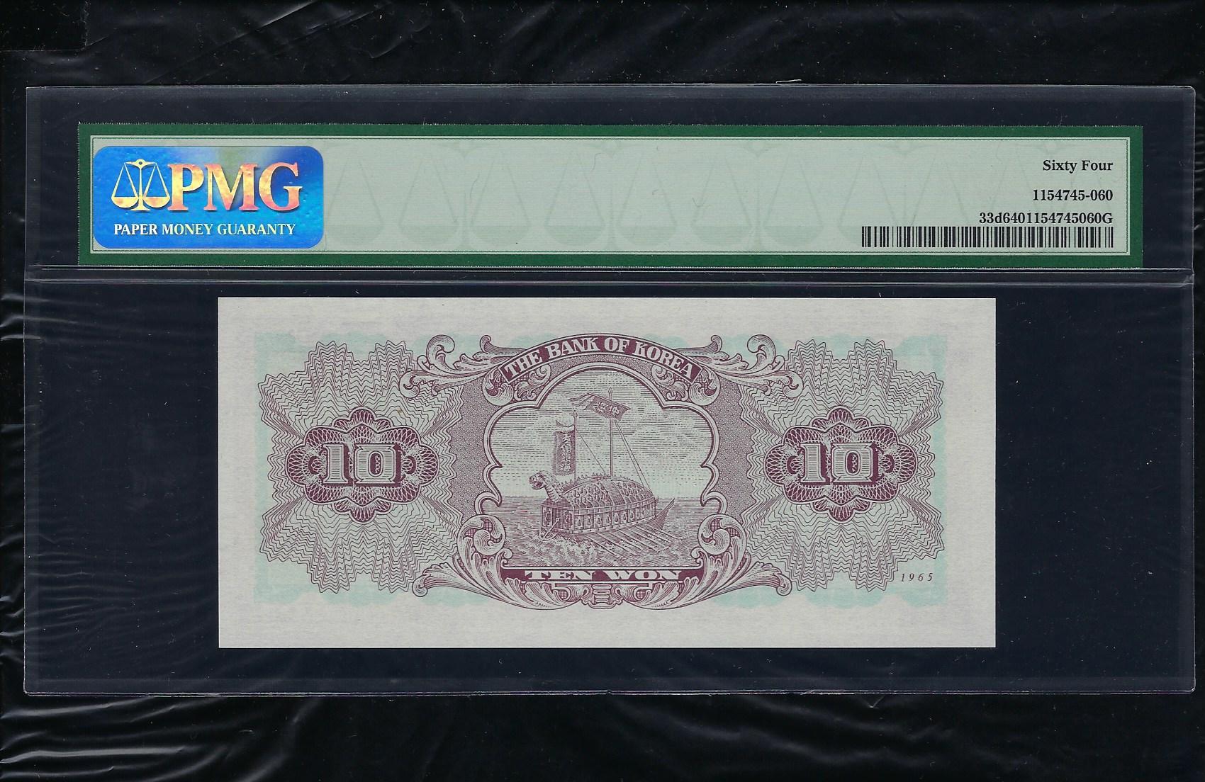 한국은행 나 10 원권 1965 년 제 71 판 PMG 64