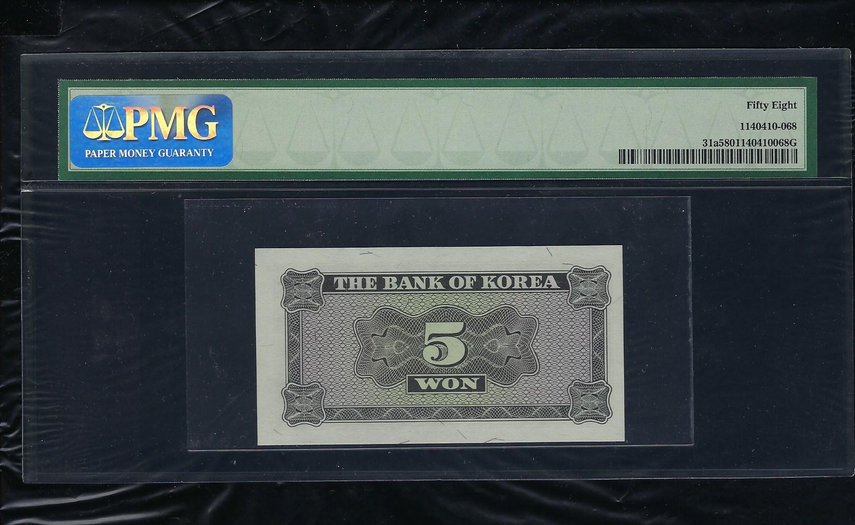한국은행 5원권 BA 기호 초판 영제 PMG 58