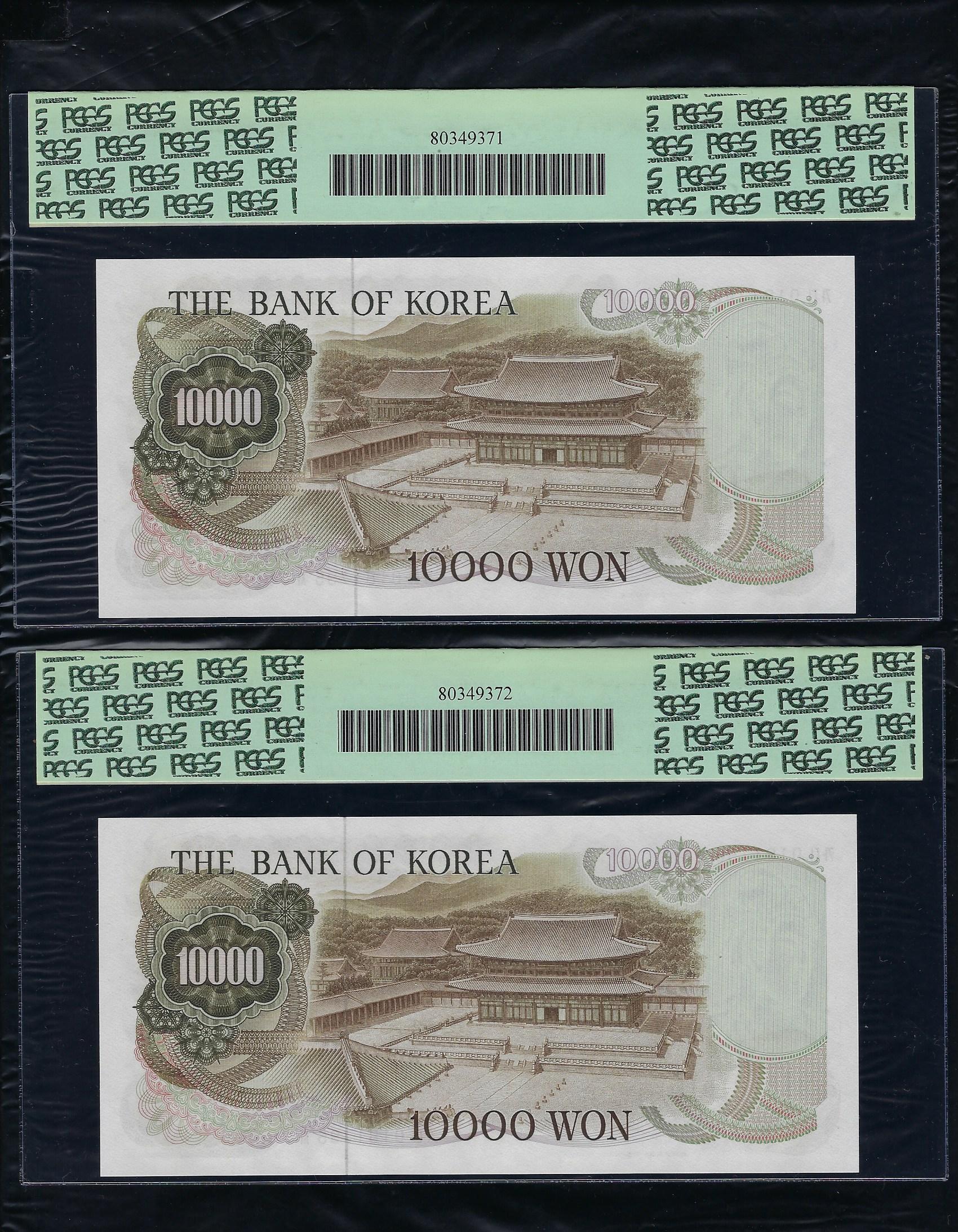 한국은행 가 10000원권으로 상태는 사진에서 보시는 봐와 같이 더 설명이 필요 없는 완전미사용품 PCGS 65 등급입니다.