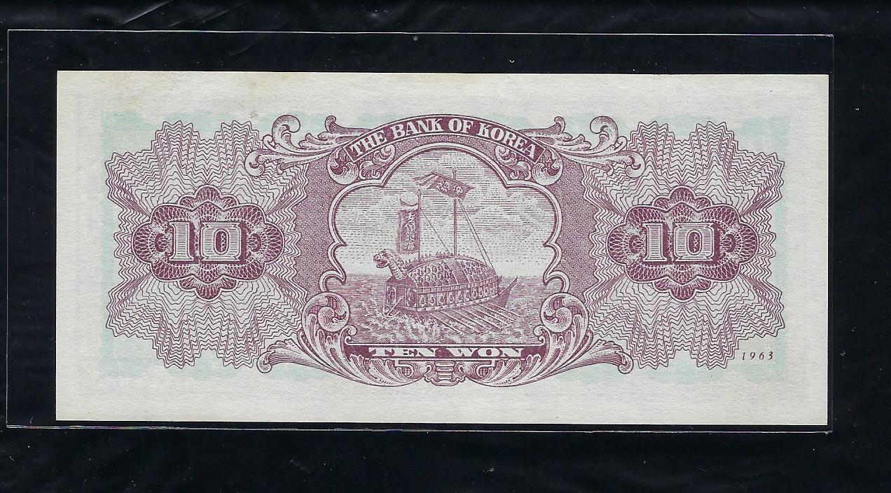 한국은행 나 10 원권 1963년 제21판으로 상태는 사진에서 보시는 봐와 같이 더 설명이 필요없는 미사용품입니다.