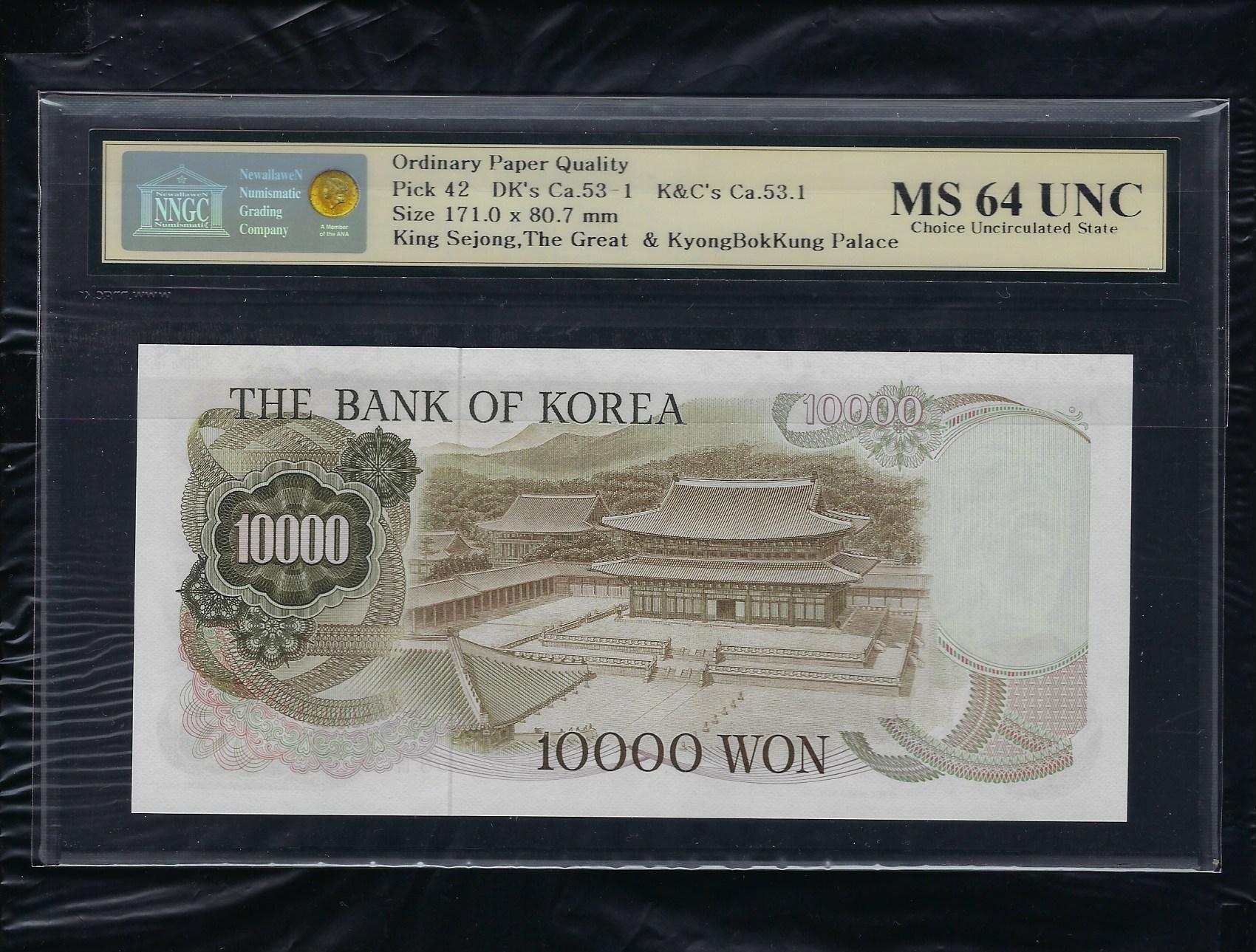 참고로 한국화폐도록 평가금액은 미사용품이 500,000원입니다만 미사용품 NNGC MS 64 UNC등급은 더 높은 가격에 거래됩니다.