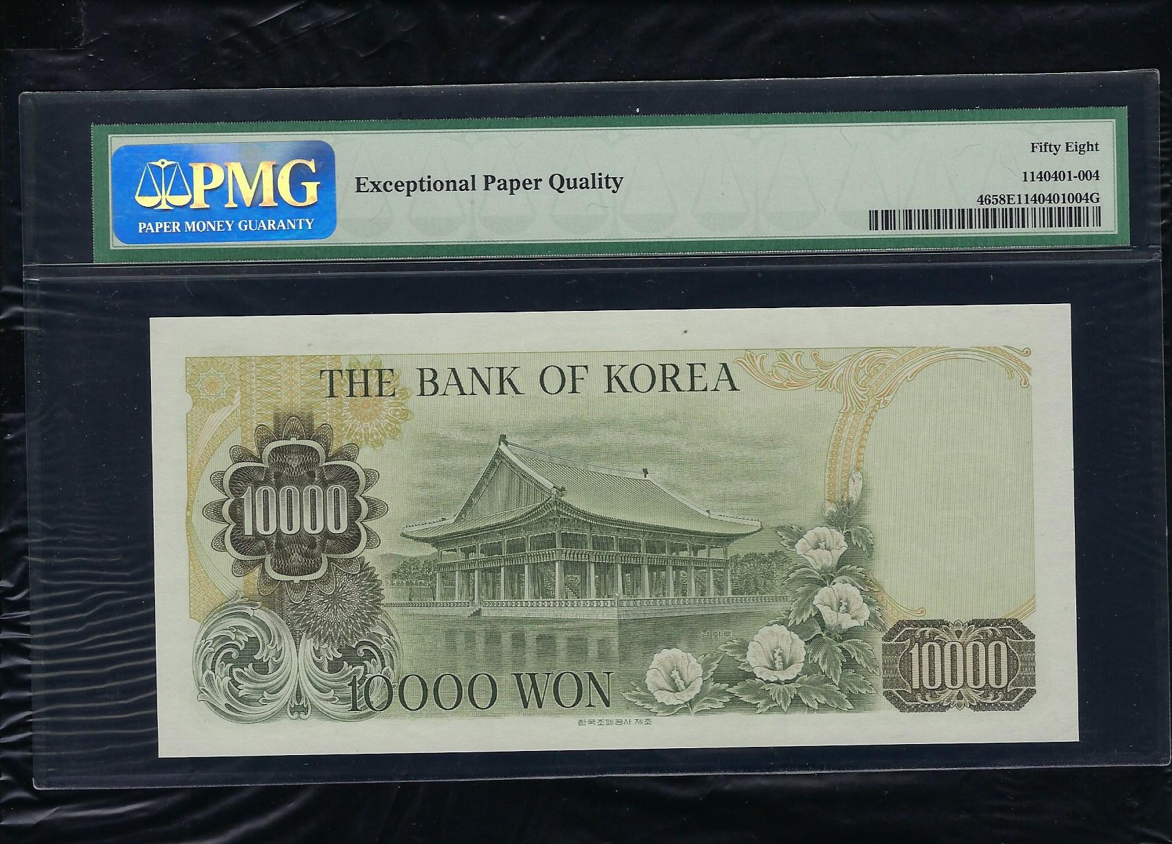 > 전체카테고리 > 우리나라 지폐 > 한국은행현행권 > 나10000원권(2차) 한국은행 2차 나 10000원권으로 상태는 사진에서 보시는 봐와 같이 더 설명이 필요 없는 최상위 준미사용품 PMG 58 EPQ 등급입니다.