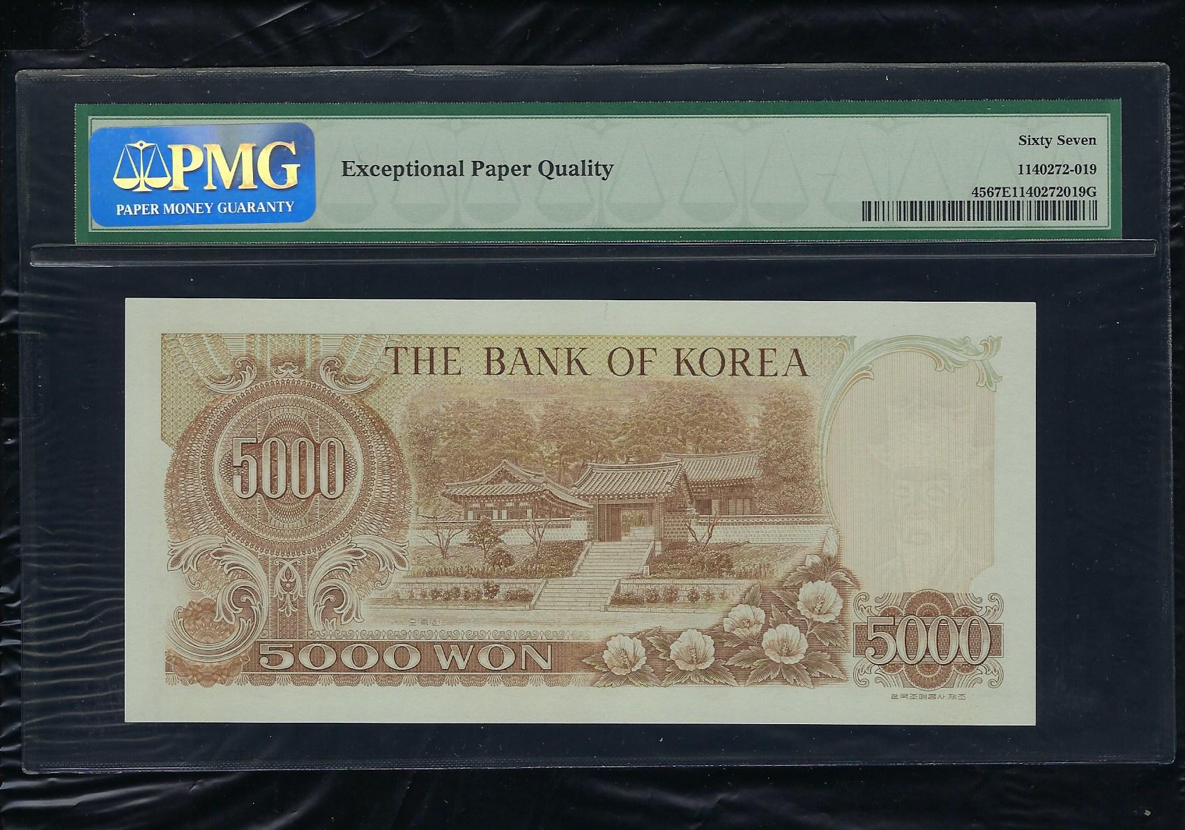 > 전체카테고리 > 우리나라 지폐 > 한국은행현행권 > 나5000원권 한국은행 2차 나 5000 원권으로 상태는 사진에서 보시는 봐와 같이 더 설명이 필요 없는 상위 완전미사용품 PMG 67 등급입니다.