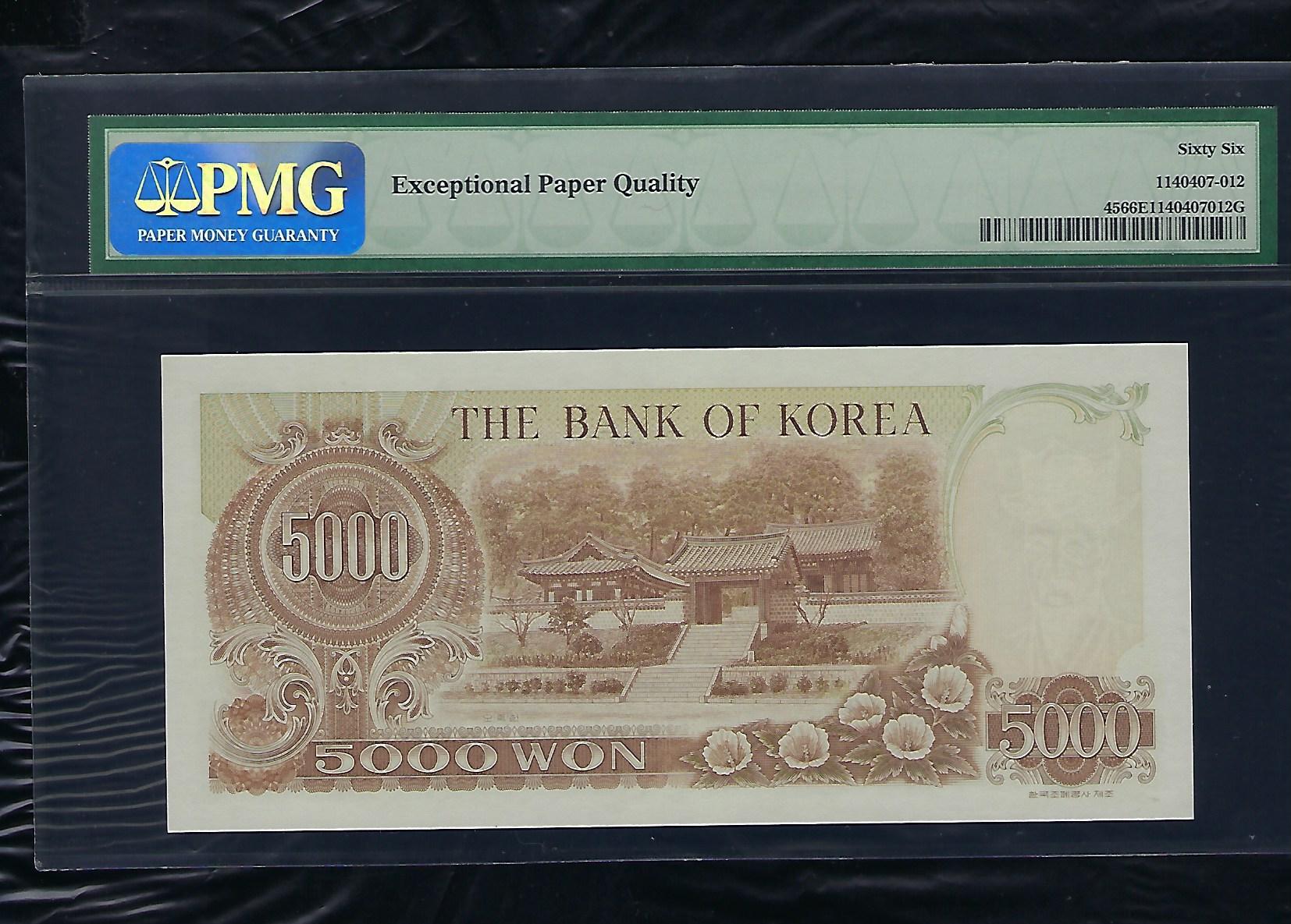 참고로 한국화폐도록 평가금액은 미사용품이 120,000원입니다만 상위 완미 PMG 66 등급은 훨씬 더 높은 가격에 거래됩니다.