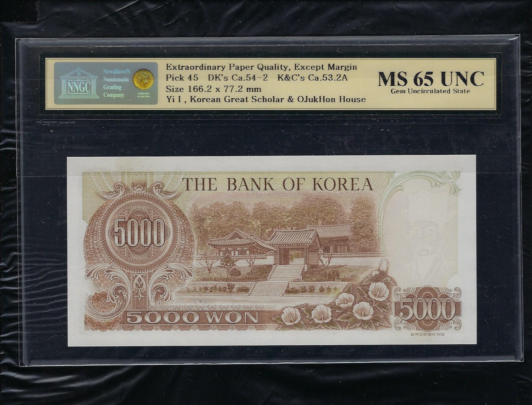참고로 한국화폐도록 평가금액은 미사용품이 120,000원입니다만 상위 완미 NNGC MS 65 UNC 등급은 훨씬 더 높은 가격에 거래됩니다.