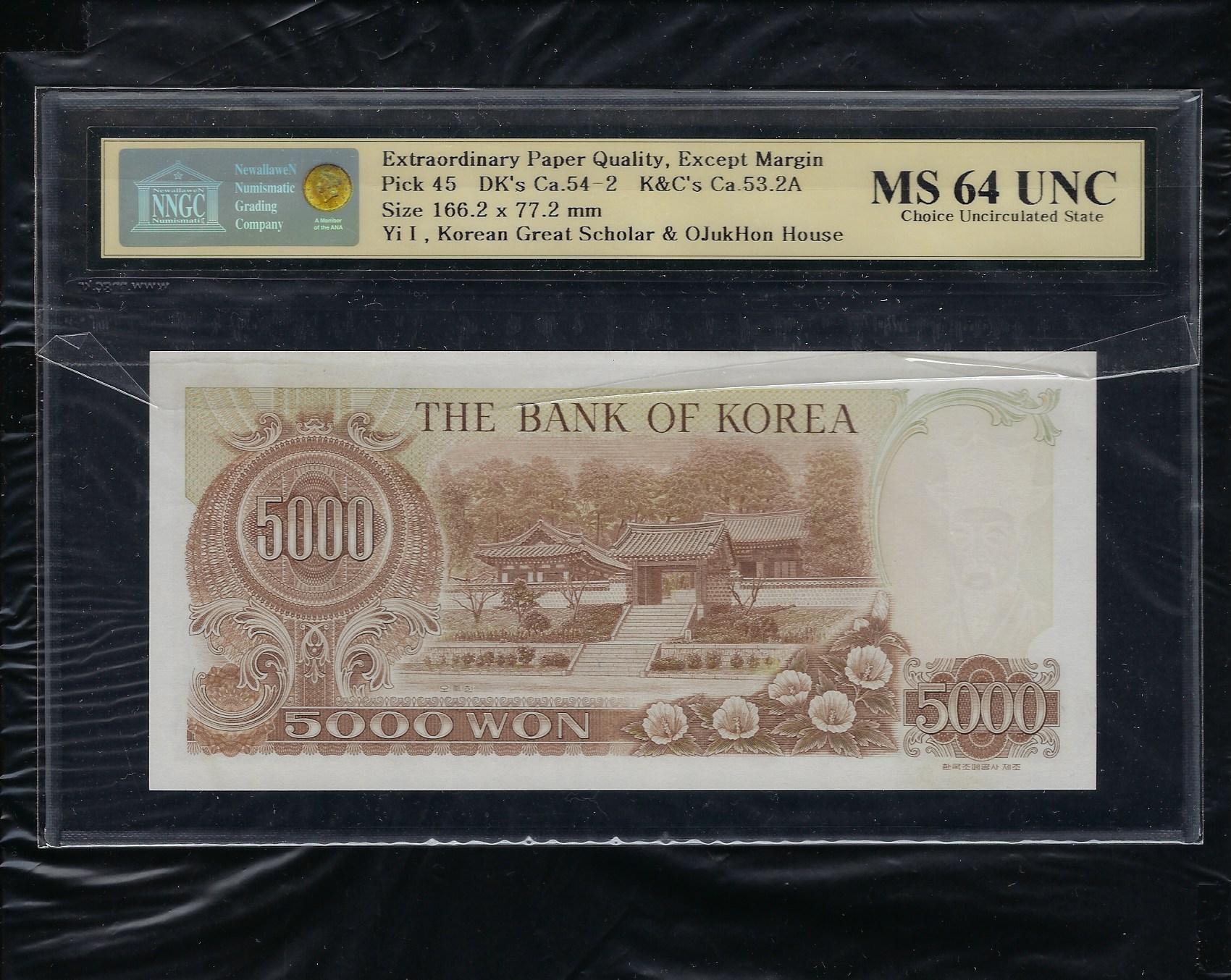 참고로 한국화폐도록 평가금액은 미사용품이 120,000원입니다만 상위 완미 NNGC MS 64 UNC 등급은 훨씬 더 높은 가격에 거래됩니다.