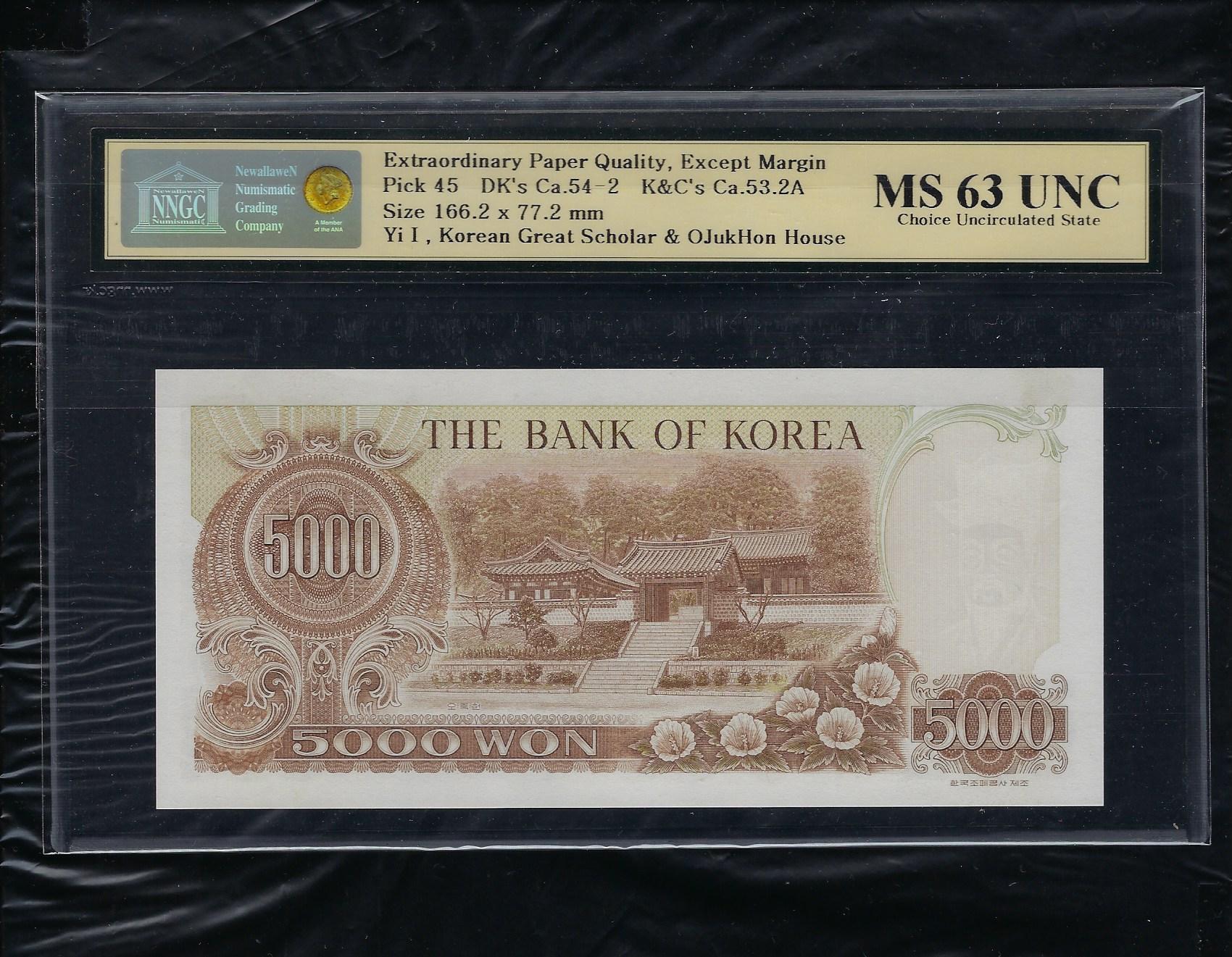 참고로 한국화폐도록 평가금액은 미사용품이 120,000원입니다만 상위 완미 NNGC MS 63 UNC 등급은 훨씬 더 높은 가격에 거래됩니다.