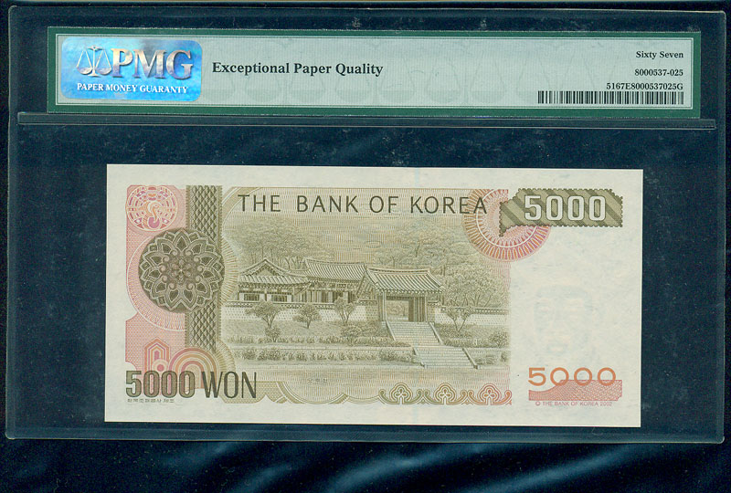한국은행 라 5,000 원권 가가가 초판 08 포인트 PMG 67 EPQ
