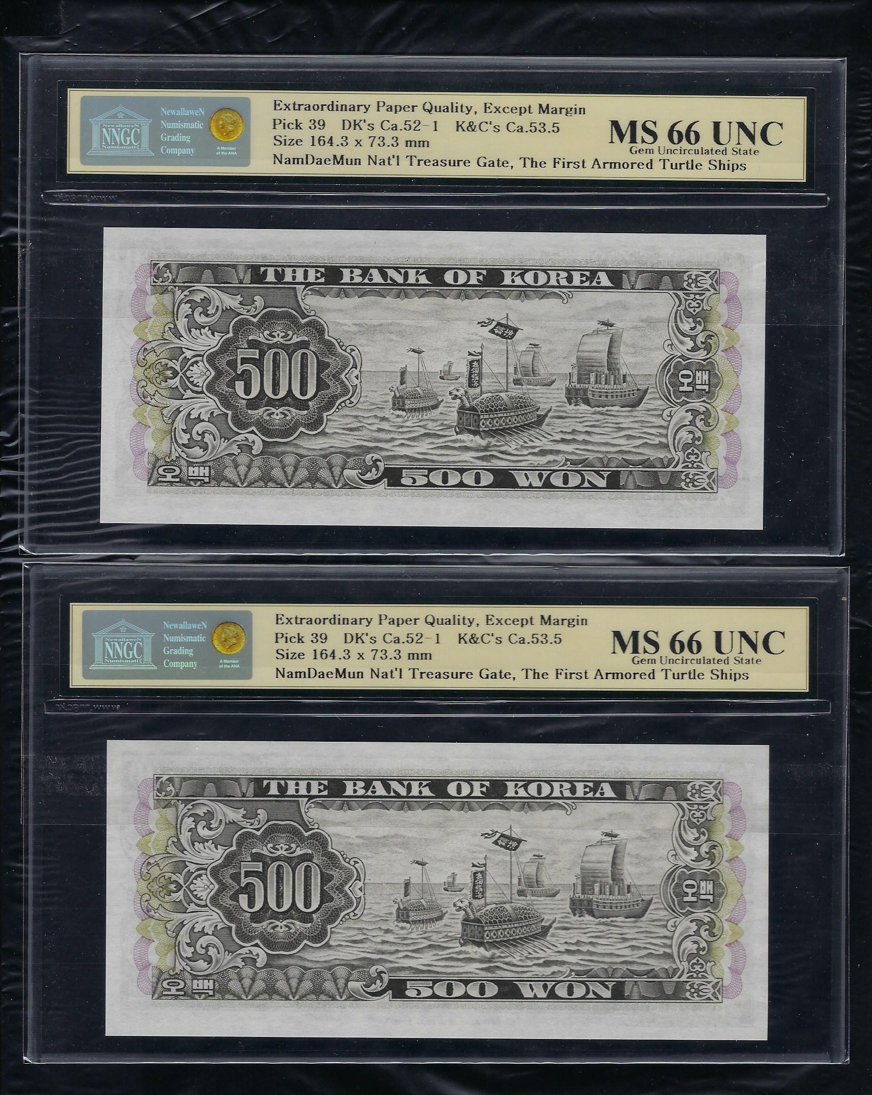 한국은행 나 500 원권 남대문 고등급 NNGC MS 66 UNC