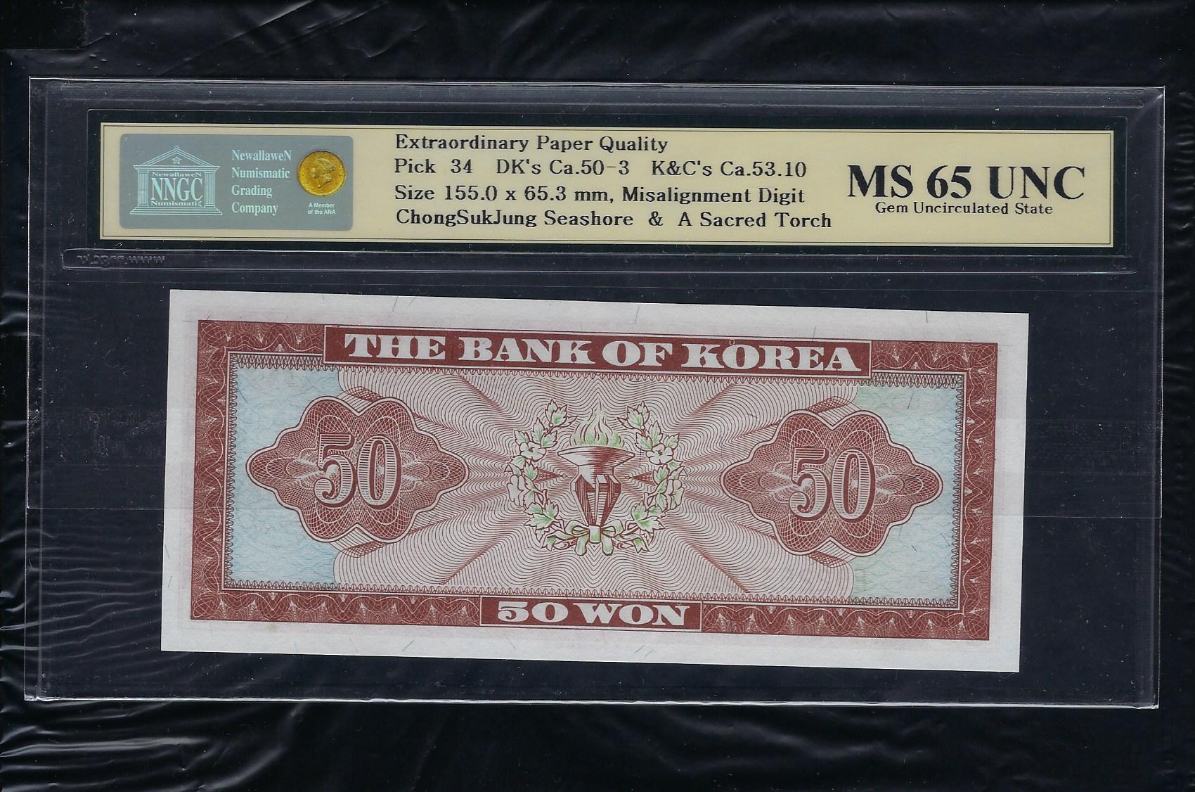 한국은행 가 50 원권 영제 NNGC MS 65 UNC.