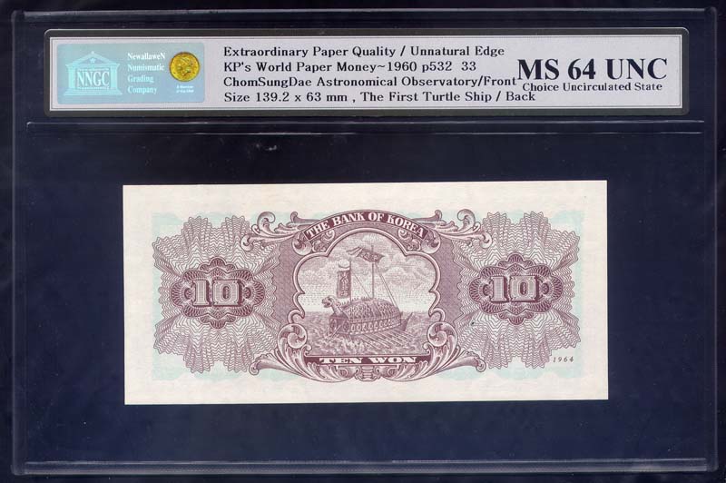 한국은행 나 10 원권 1964년 제37판 NNGC MS 64 UNC