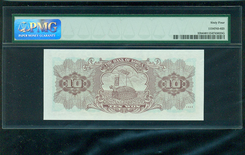 한국은행 나 10 원권 1963 년 제 20 판 PMG 64