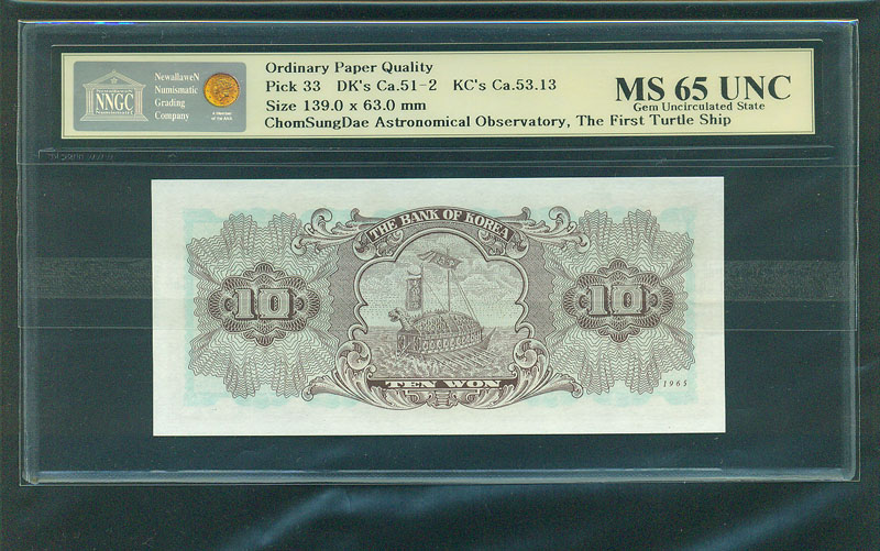 한국은행 나 10 원권 1965 년 제 74 판 NNGC MS 65 UNC