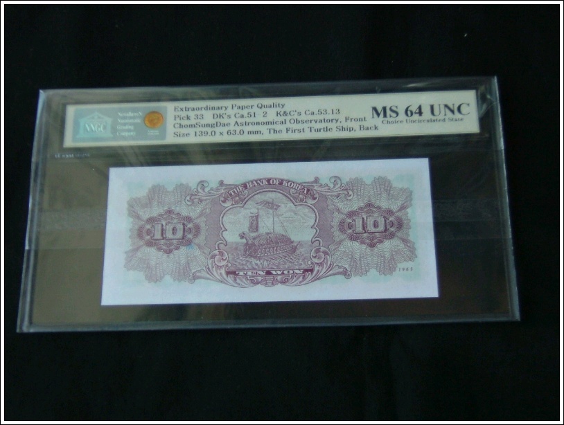 한국은행 나 10 원권 1965년 제70판 NNGC MS 64 UNC