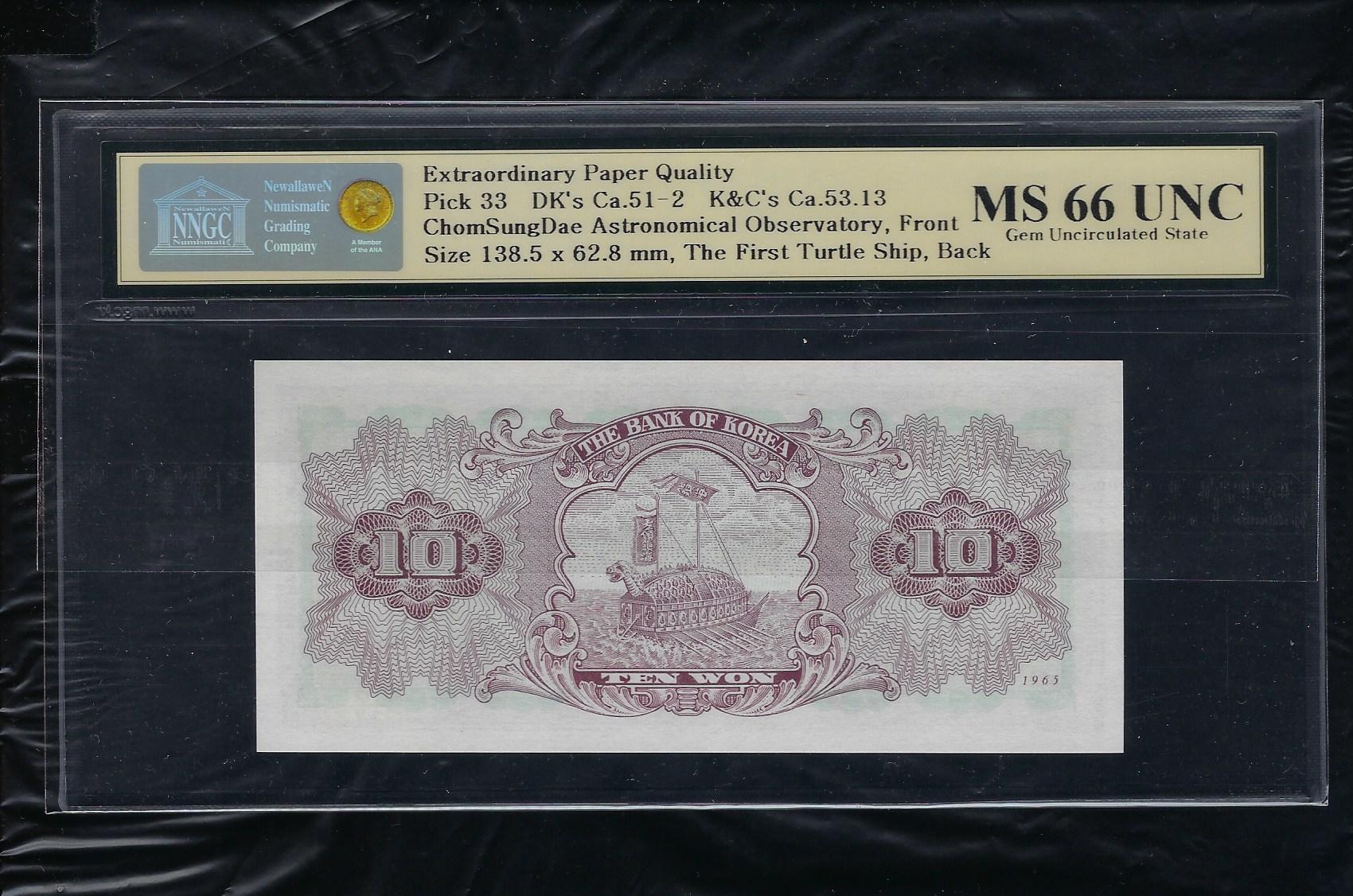 한국은행 나 10 원권 1965 년 제 78 판 NNGC MS 66 UNC