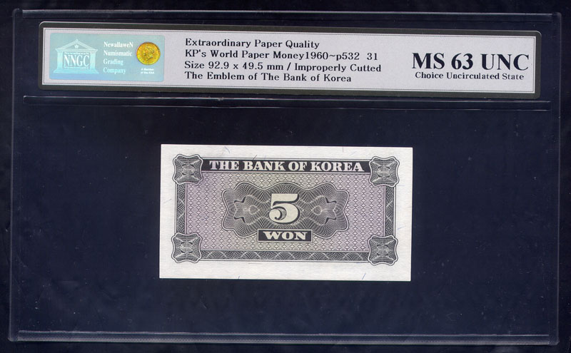 한국은행 5 원권 영제 초판 BA기호 NNGC MS 63 UNC