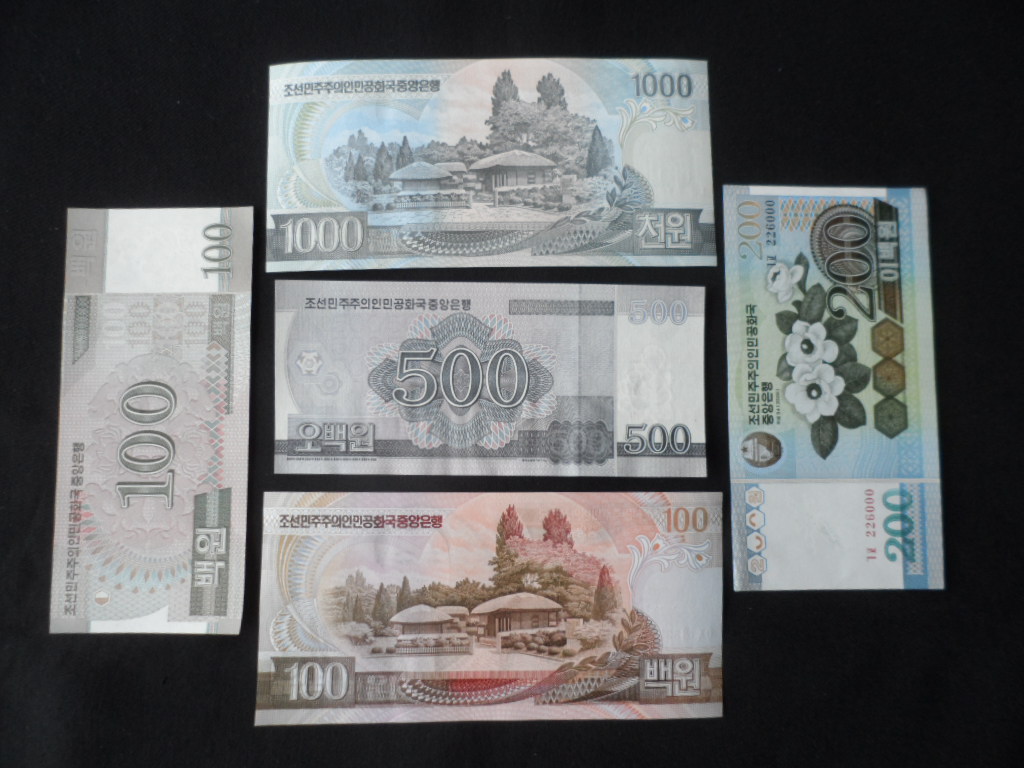 북한지폐 1000.500.200.100(2)원 5종 미사용품