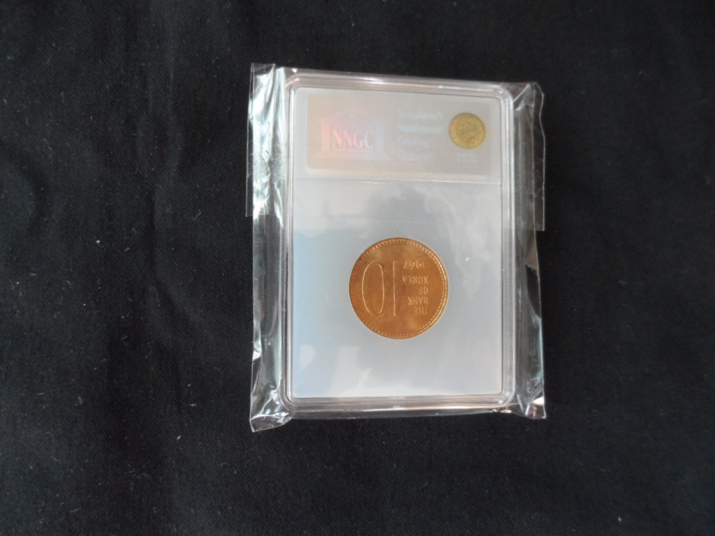 > 전체카테고리 > 주화 1967년 한국은행 발행 10원 주화 MS 63 UNC 등급으로 상태 미사용품입니다. 아주 귀한 연도입니다.