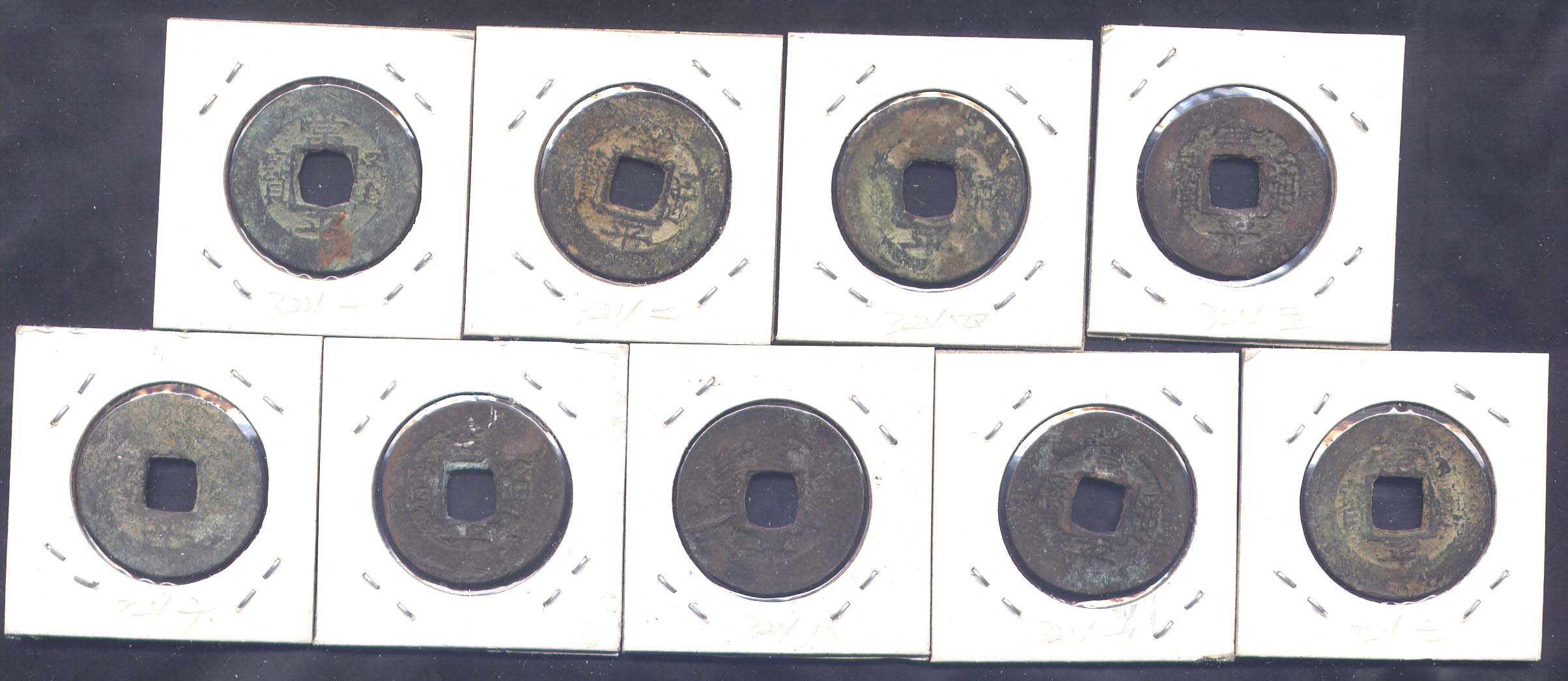 > 전체카테고리 > 주화 常平通寶當 當一錢 背 `訓`下 `元` 右;數字順 9종으로 상태는 사진과 같이 아주 좋습니다