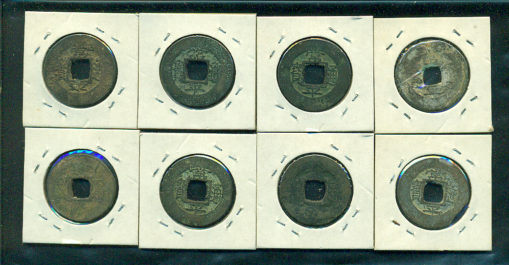 常平通寶 當一錢 背 `訓`下 `元` 右;數字順,三,八,字 제외 8종으로 상태는 사진과 같이 아주 좋습니다