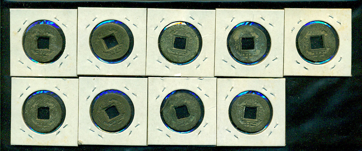 常平通寶 當一錢 背 `平`下 `日`右;數字順` 小形 9종(十결)으로 상태는 사진과 같이 아주 좋습니다