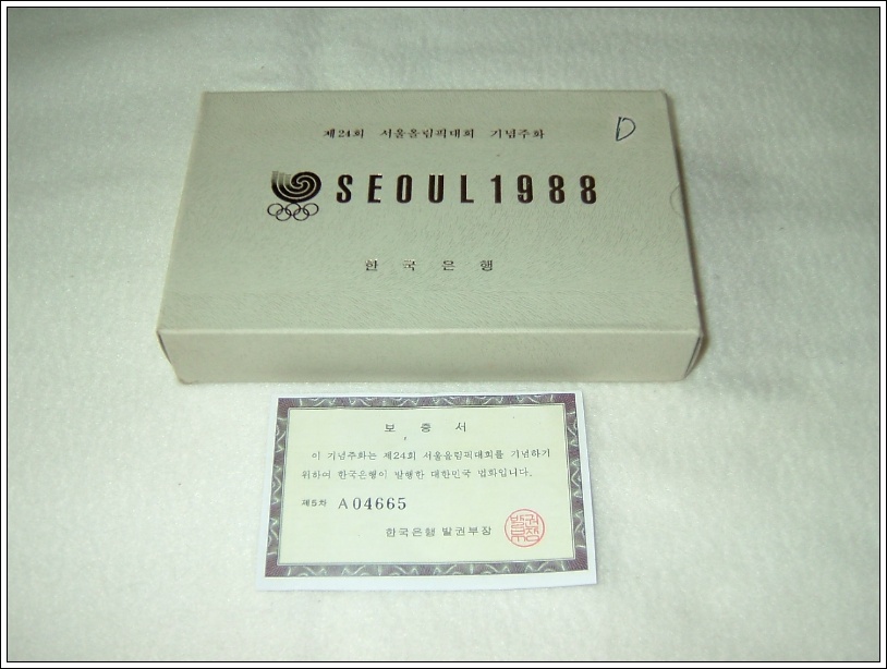 > 전체카테고리 > 주화 88서울 올림픽 4종 은화 (5회차)로 10,000원은화(은92.5%.33.62g.지름 40mm) 4종이고, 상태는 푸르푸화로