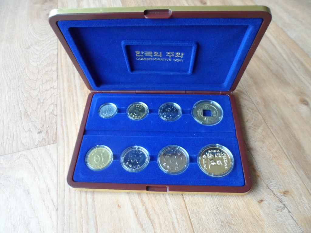 > 전체카테고리 > 주화 현행주화 6종 set와 상평통보와 숭례문 메달이 포함된 set로 주화를 사진과같이 캡슈에 넣어 완전미사용품으로 영구 보관할 수 있도록 만들어진 기념품입니다.