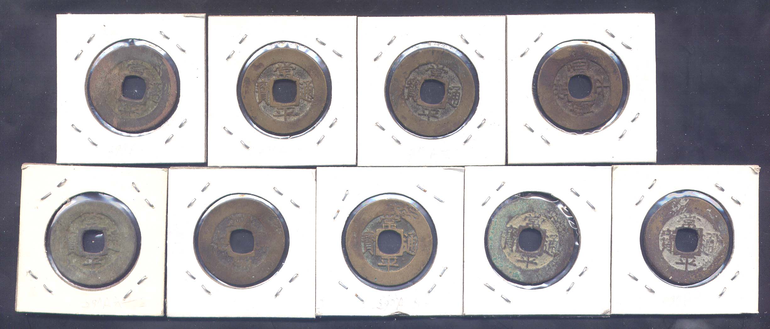 > 전체카테고리 > 주화 > All 常平通寶當 當一錢 背 `戶`下 `宇` 右;數字順 小字,小形 9종으로 상태는 사진과 같이 아주 좋습니다