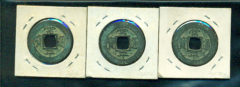 常平通寶 當一錢 背 `惠`下;數字順`小字 二,七,八 3종으로 상태는 사진과 같이 아주 좋습니다