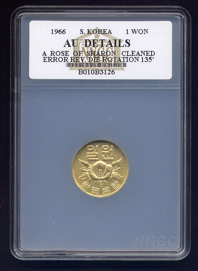 1966년 한국은행 가 1원 주화 준미사용품 NNGC AU 로테이션 135` 에러