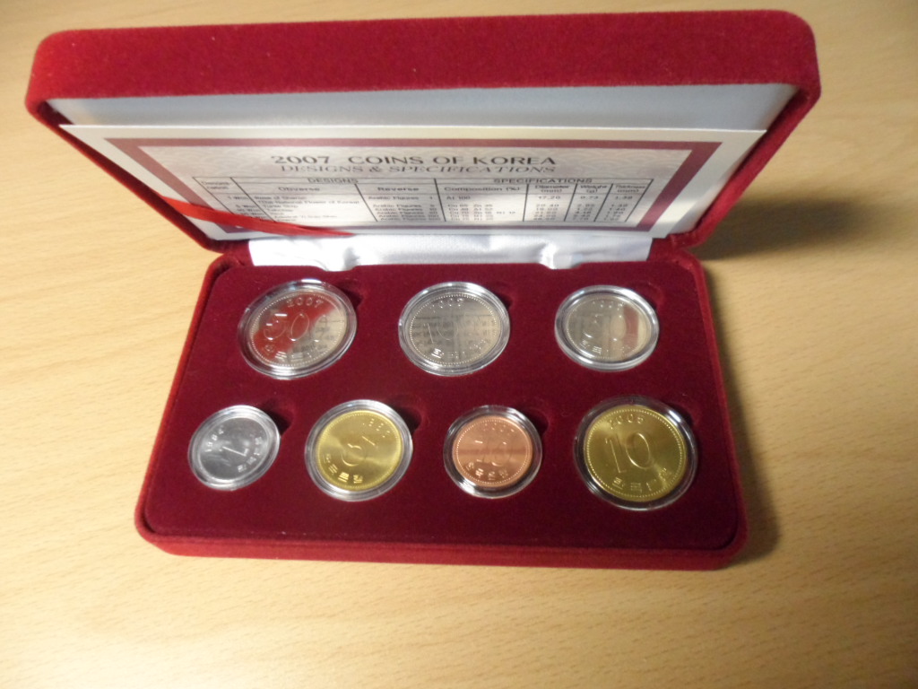 | 2007 현행주화 7종 set로 상태는 완전미사용품입니다. 주화를 켑슐에 넣어 고급케이스에 담아 사진를
