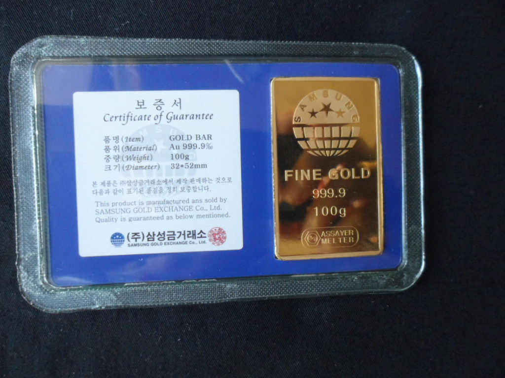 > 전체카테고리 > 금/골드바 골드바 삼성프레스골드바 100g(999.9%)로 상태는 사진과 같이 매우좋습니다(퍼펙트). 삼성금거래소 프레스 골드바로 보증서 첨부하여 보내드립니다.