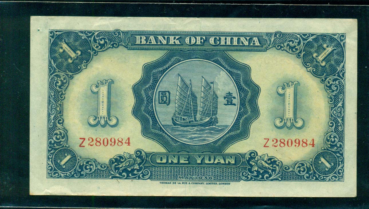 中國銀行 1원권 中華民國 二十五年 1936 準未使用品