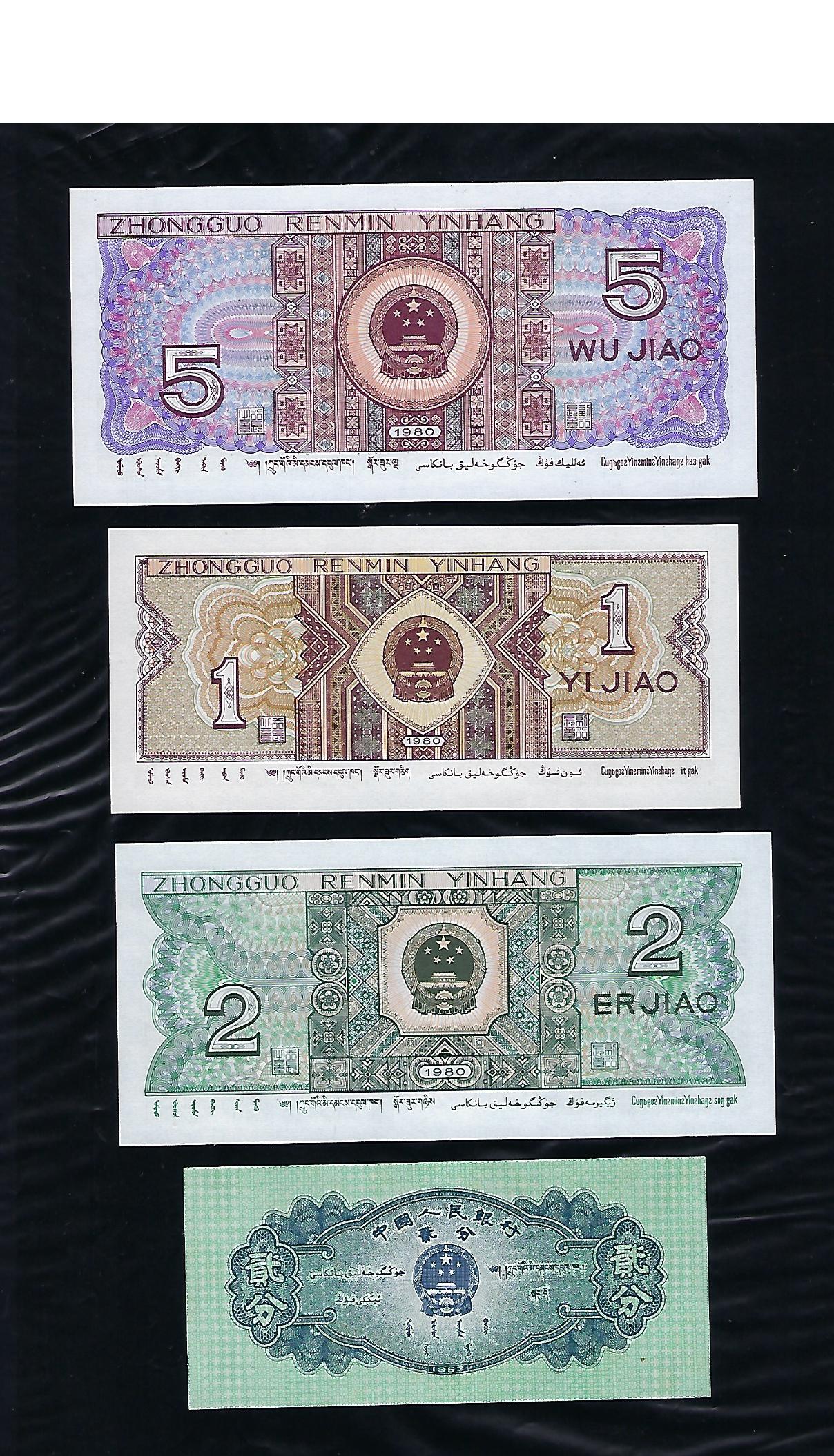 중국인민은행 1980년 5각 1각 2각 1분 4종 set