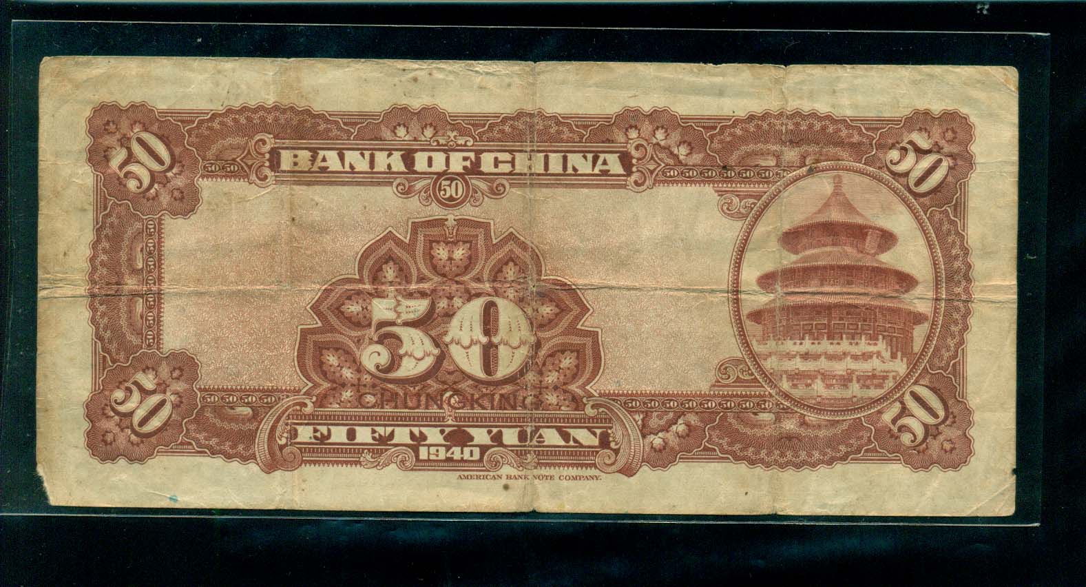 中國銀行 50원권 中華民國 二十九年 1940 美品