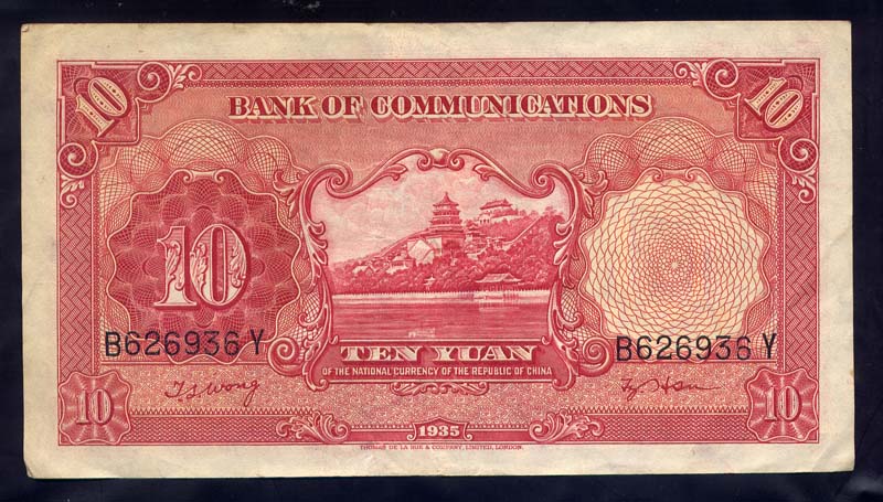 중국교통은행권 1935년발행 10원권