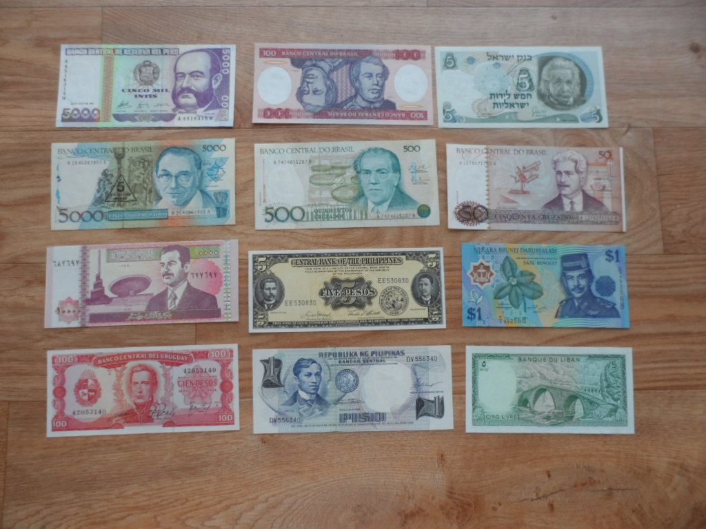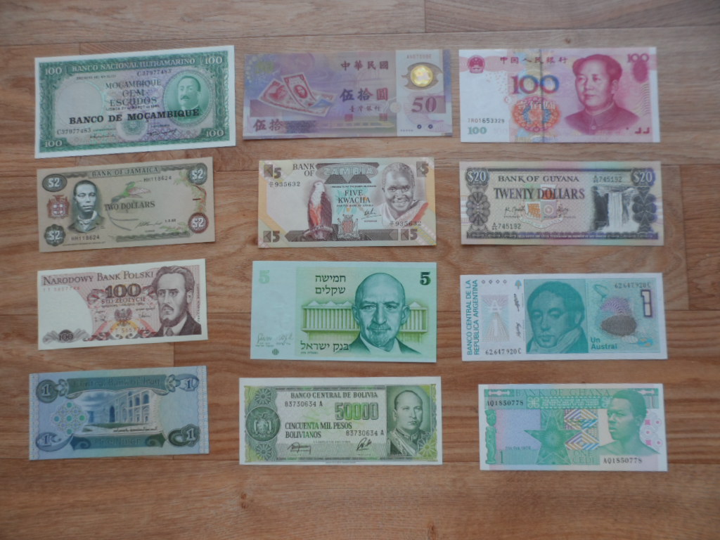 세계 여러나라 지폐 수집품 121종으로 사진에서 보신봐와 같이 미사용품으로  귀한 지폐들이 많이 들어있습니다.