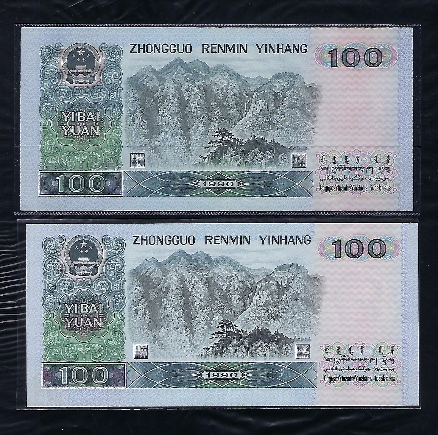 중국인민은행 1990년 100위안 미사용품