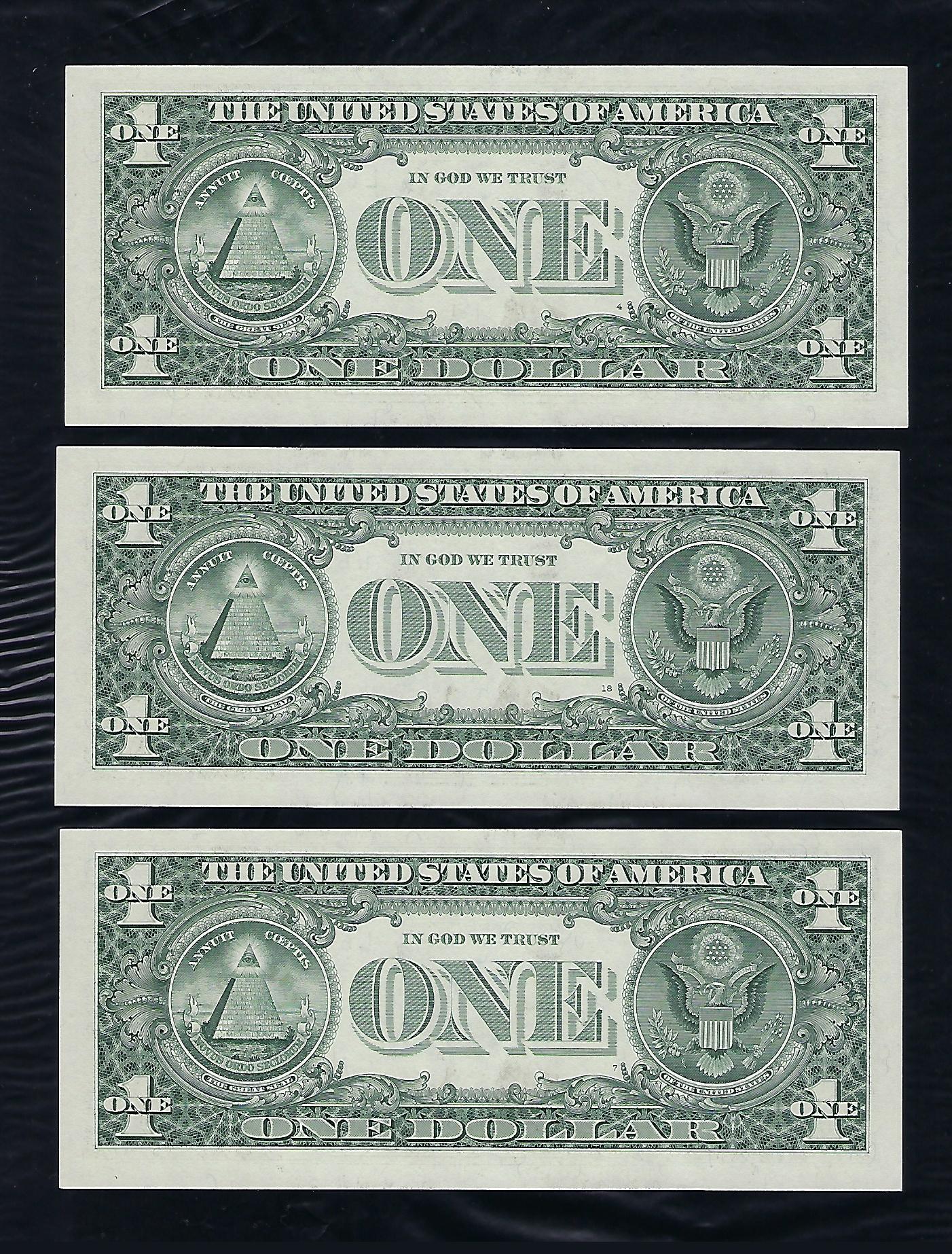 미국지폐 2001년 USD $1 완전미사용품 연번호3장일괄