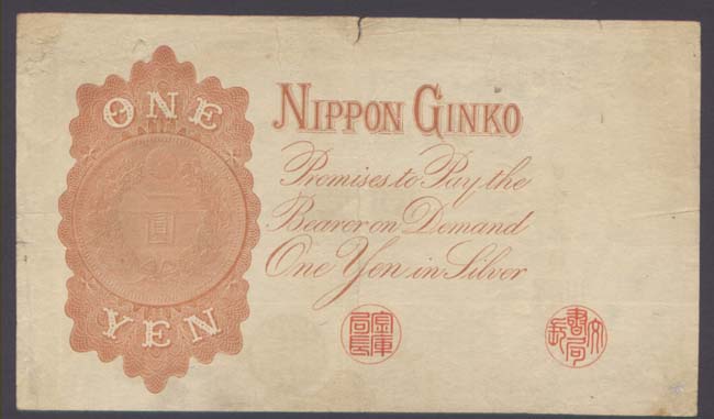 > 전체카테고리 > 외국지폐 > 일본지폐 일본은행 태환 1원권으로 아주아주 오래된 일본지폐입니다.