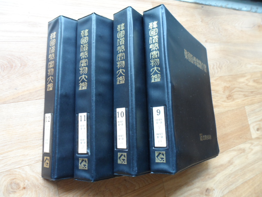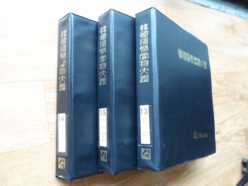 한국화폐실물대감 15권으로 1-13권은 동국중보부터 상평통보 당5전 까지 사진으로 순서대로 수집할 수 있게 되어 있으며 15-16권은 지폐를 순서대로 정리 수집할 수 있도록 사진으로 인쇄도어 있습니다.지금은 발행되지 않는 귀한 앨범입니다.