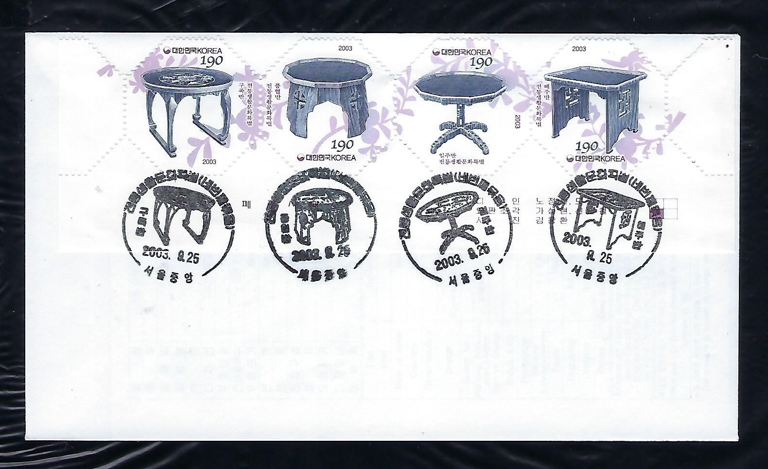 2003년 전통 생활문화 네번째 묶음 우표 4연쇄 초일 봉투(FDC)