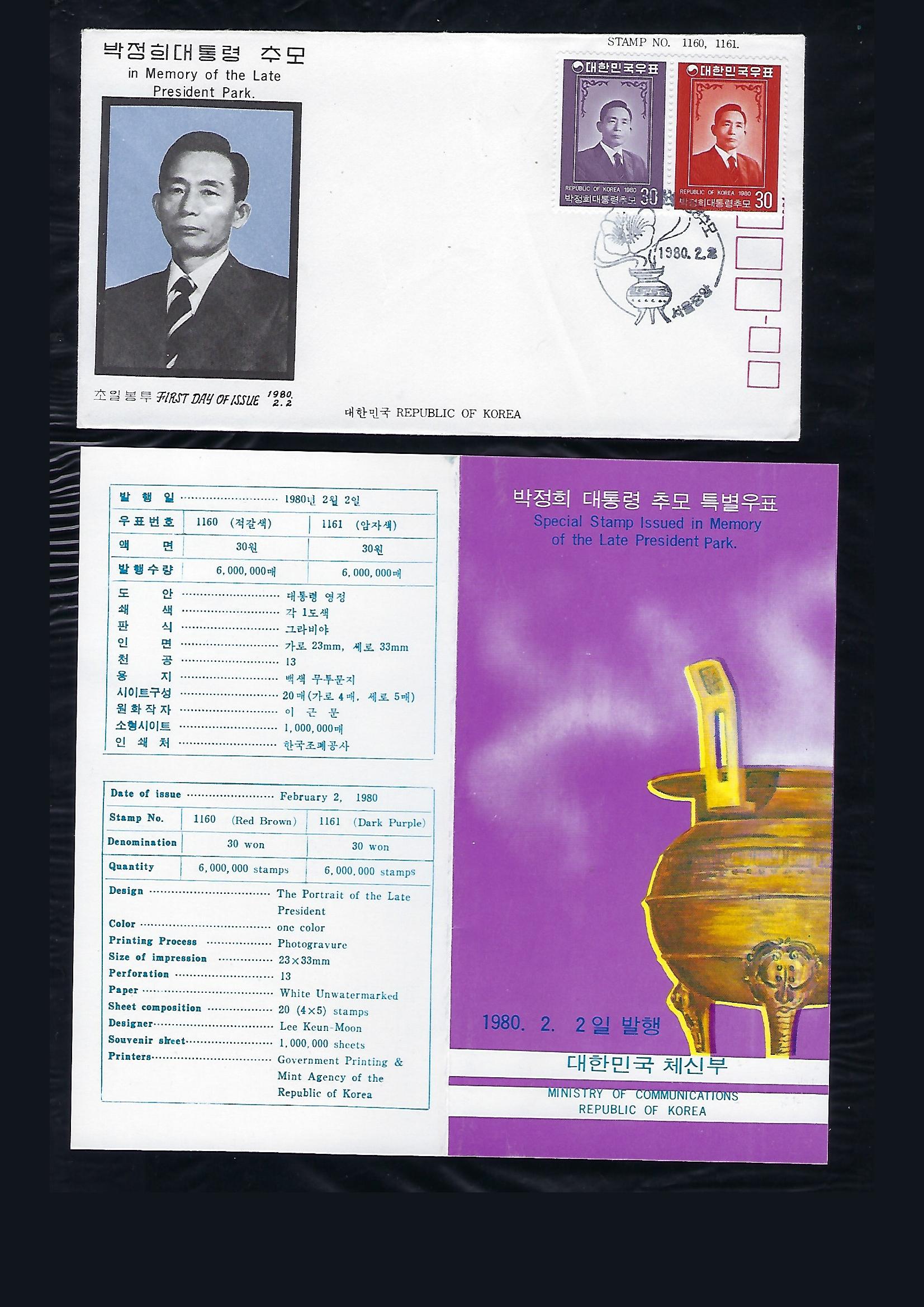 1980년 박정희 대통령 추모 2완 초일봉투 (FDC) 안내카드 포함