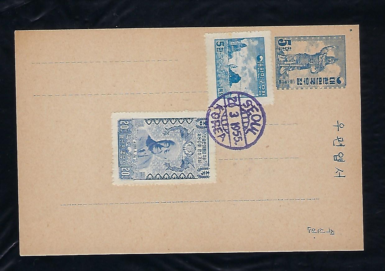 5환 을지문덕 엽서에 이승만 대통령 80회탄신 초일 소인