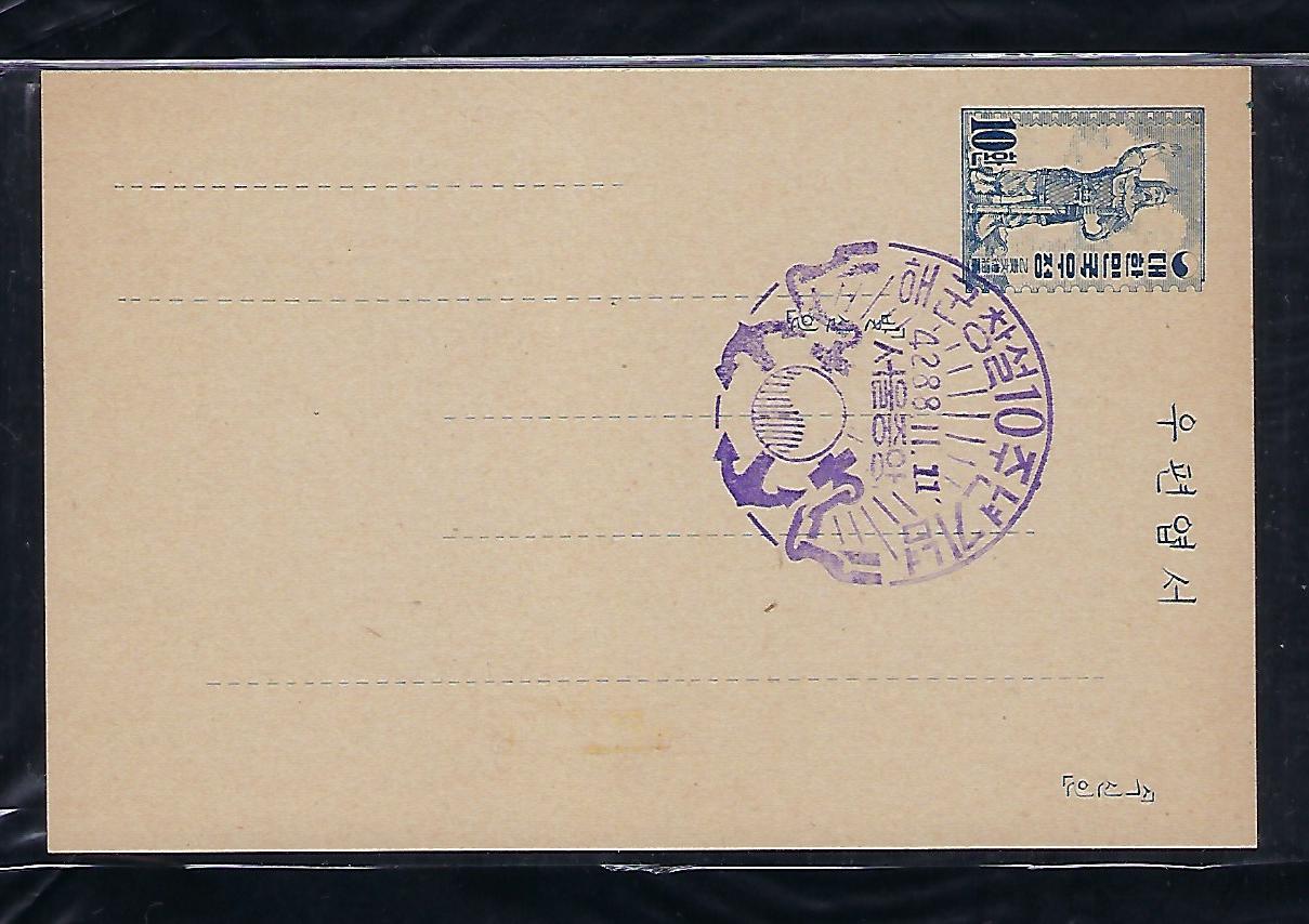 10환 을지문덕 엽서에 해군 창설 10주년 소인
